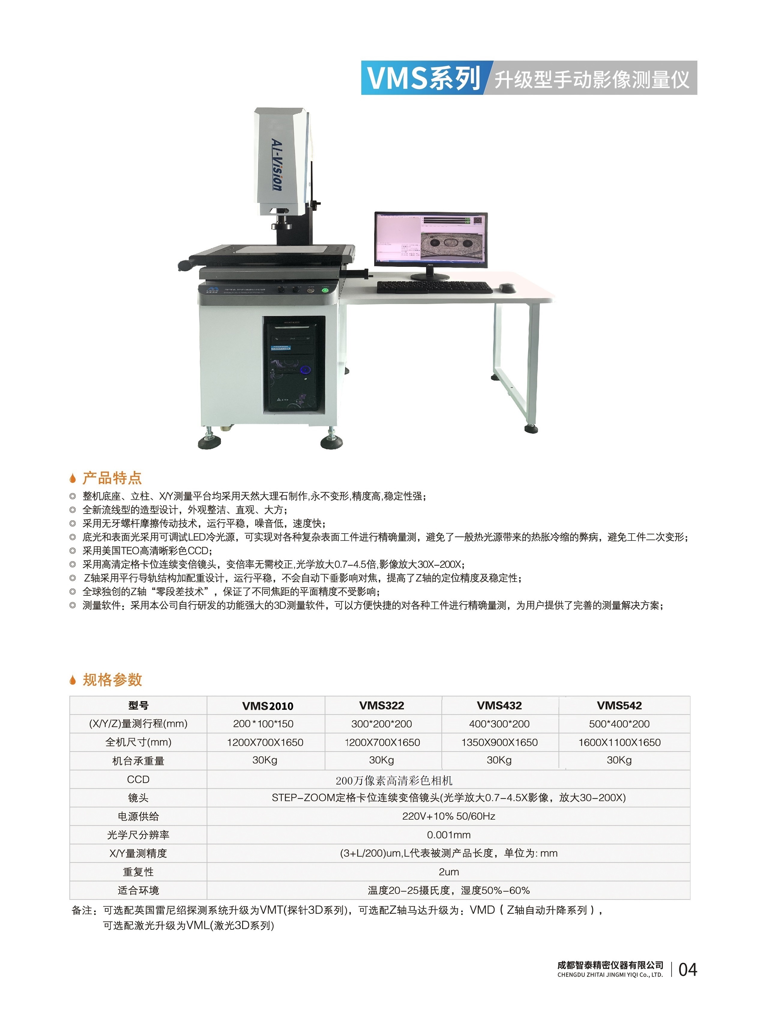 成都智泰精密儀器有限公司專注于精密測量儀器,人工智能,智能制造領(lǐng)域,專業(yè)從事智能視覺自動化檢測解決方案的貿(mào)易型企業(yè)。公司成立于2011年,位于天府之國成都,現(xiàn)有行業(yè)精英十余人,辦公倉儲面積200余平米。 公司主要產(chǎn)品為精密光學影像測量儀,精密輪廓形狀測量儀,精密機器人定位系統(tǒng),精密智能視覺尺寸檢測儀器,精密表面缺陷智能檢測設(shè)備,工業(yè)工程特種機器人。 公司憑借過硬的技術(shù)實力和產(chǎn)品方案,率先進入智能視覺自動化檢測領(lǐng)域,推廣以精密智能視覺自動化檢測為基礎(chǔ)的機器人自動化應(yīng)用,公司不斷整合上下游的資源,擁有巨大的全產(chǎn)業(yè)鏈優(yōu)勢??蛻羧后w覆蓋了我國精密制造業(yè)的多數(shù)領(lǐng)域,包括航空、航天、軍工、汽車、新能源、光伏、食品,精密電子、精密機械、模具、PCB、LCD、五金、塑膠、醫(yī)療、教育、計量及科研院所等行業(yè)。 公司創(chuàng)新的產(chǎn)品能滿足生產(chǎn)與制造行業(yè)客戶的要求,訓練有素的工程師能及時提供多種技術(shù)服務(wù),如解...